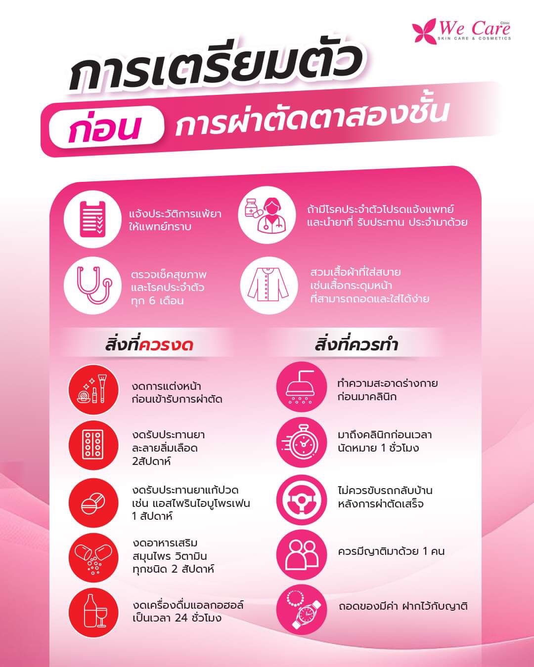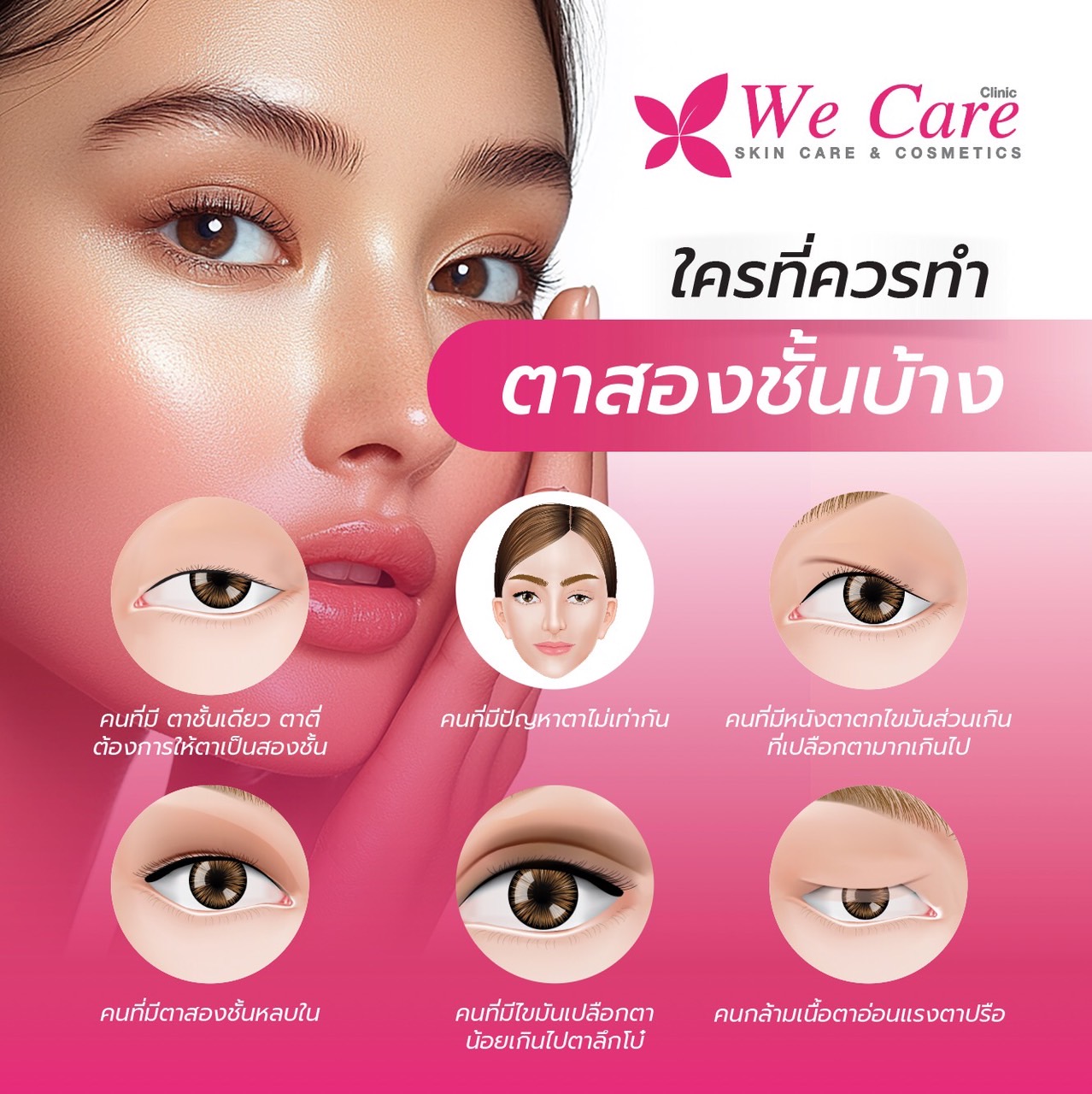 เป็นศัลยกรรมที่ได้รับความนิยมสูงรองลงมาจากการทำศัลยกรรมจมูกเพราะปัจจุบันบุคลิกภาพมีผลต่อการทำงาน สภาพจิตใจและสังคม เป็นอย่างมากฉะนั้นวีแคร์คลินิกจึงมานำเสนอความรู้ให้กับบุคคลที่สนใจหรือกำลังคิดจะทำศัลยกรรมตาสองชั้นว่าศัลยกรรมตาสองชั้นคืออะไร มีวิธีการทำอย่างไร การดูแลและการเตรียมตัวก่อนและหลังการผ่าตัดมีอะไรบ้าง